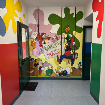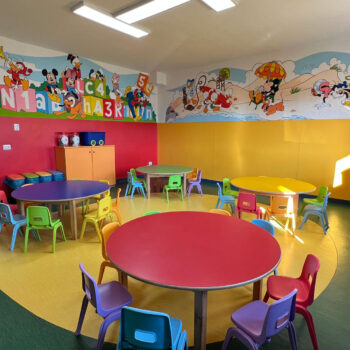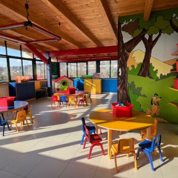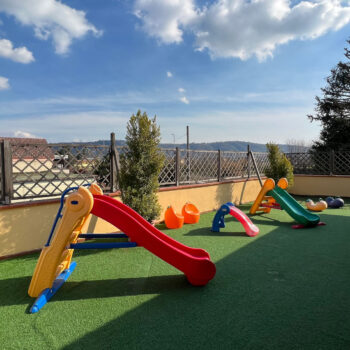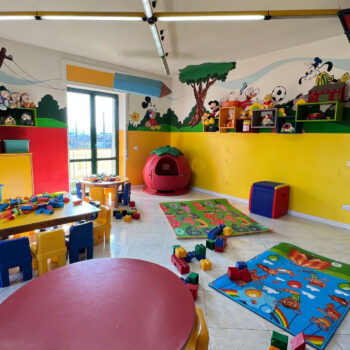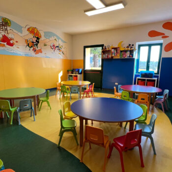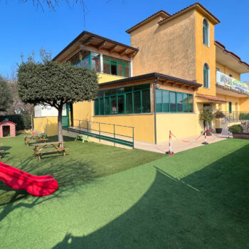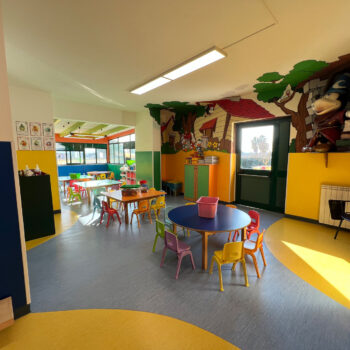 La struttura scolastica si sviluppa su due piani, in ambienti estremamente luminosi, con aule predisposte efficientemente al gioco e all’apprendimento e spazi comuni e di condivisione.