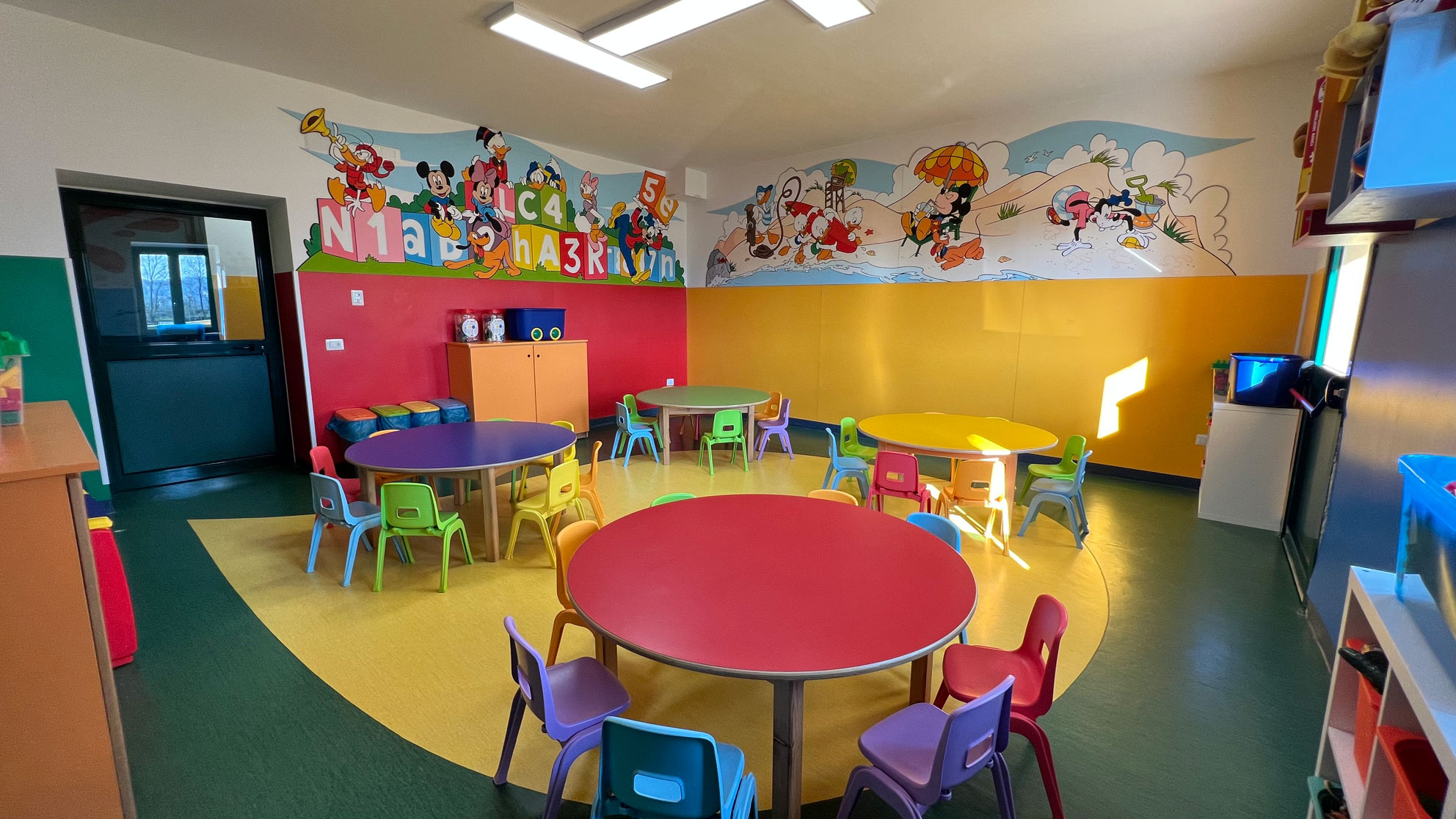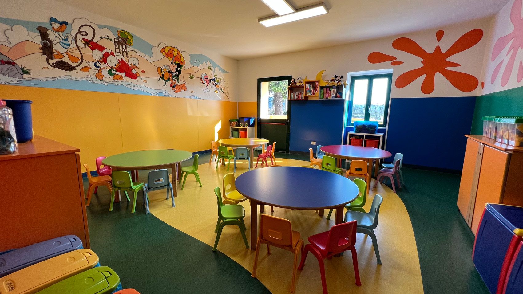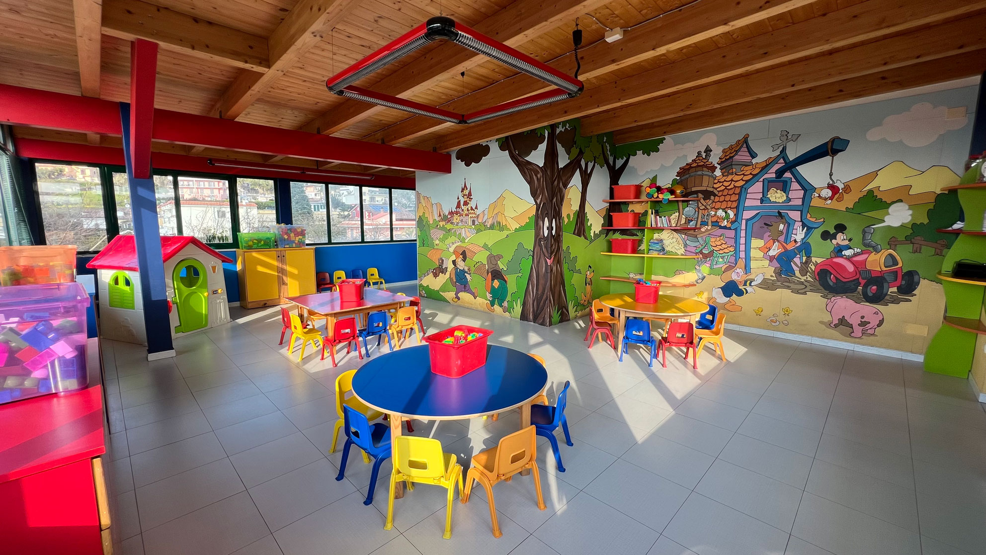 La struttura scolastica si sviluppa su due piani, in ambienti estremamente luminosi, con aule predisposte efficientemente al gioco e all’apprendimento e spazi comuni e di condivisione.